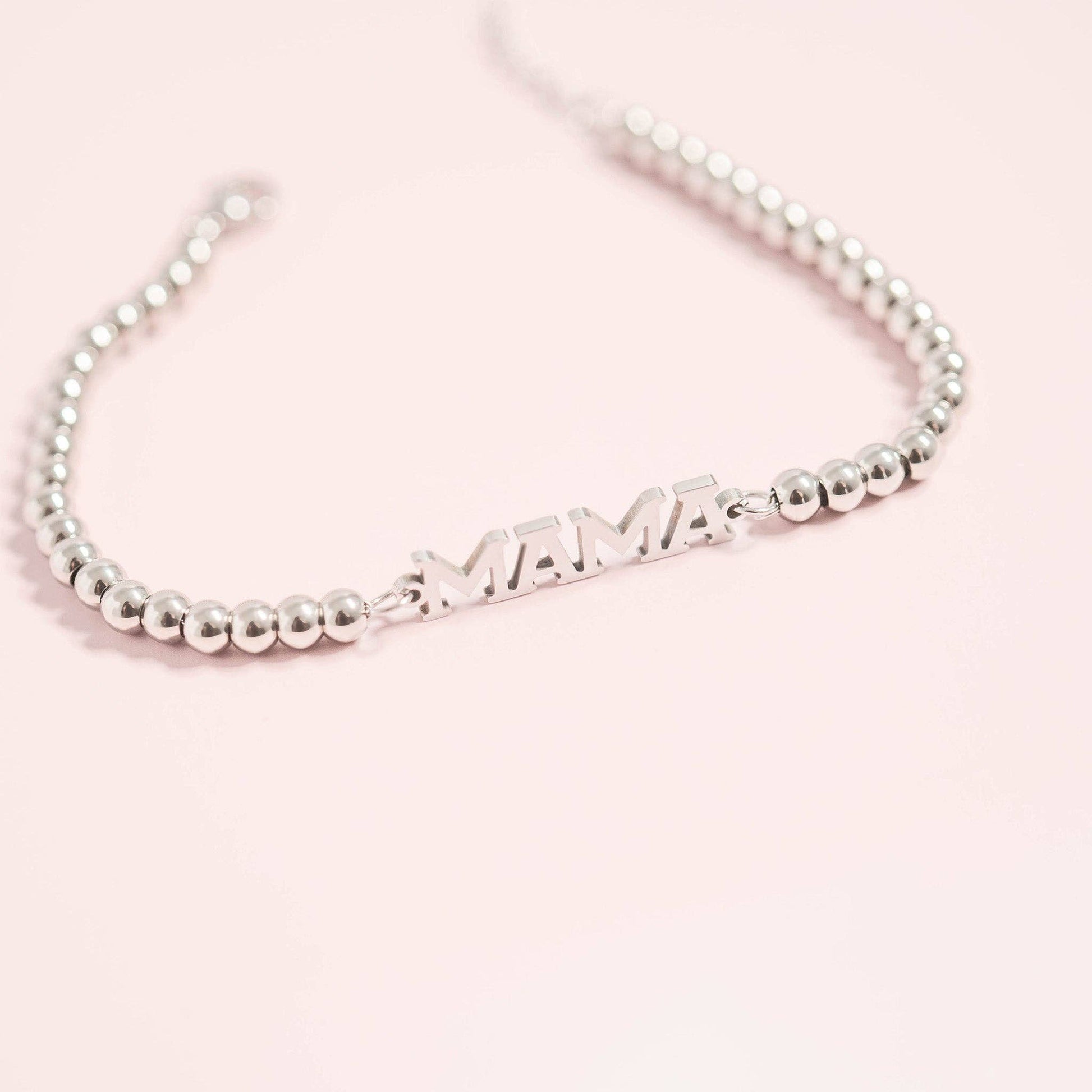 18K Gold PVD Stainless Steel "Mama" Beaded Charm Bracelet