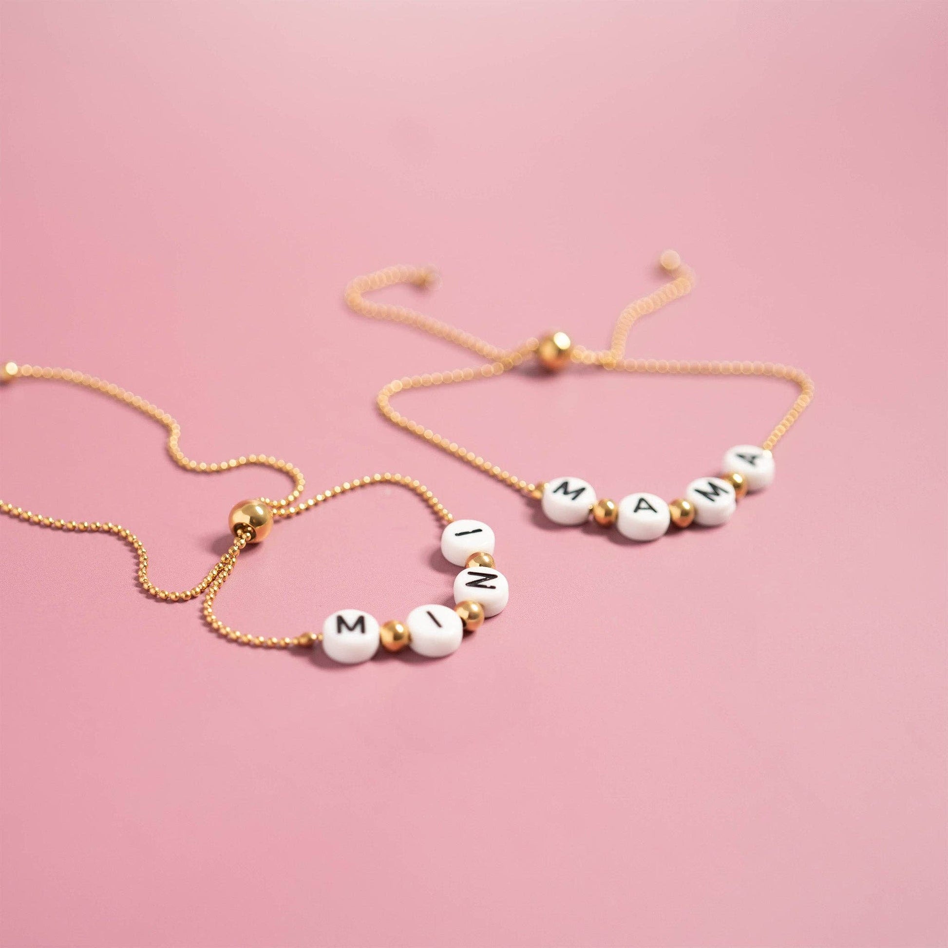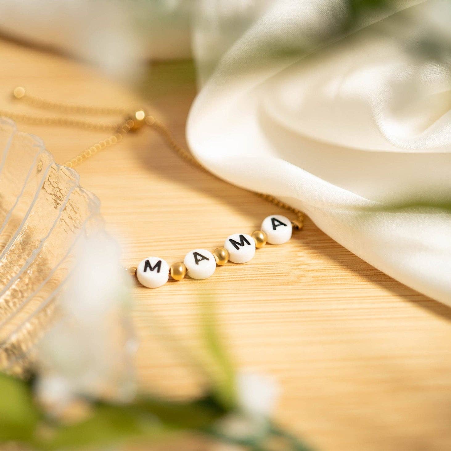 18K Gold PVD Stainless Steel "Mama" Beaded Charm Bracelet