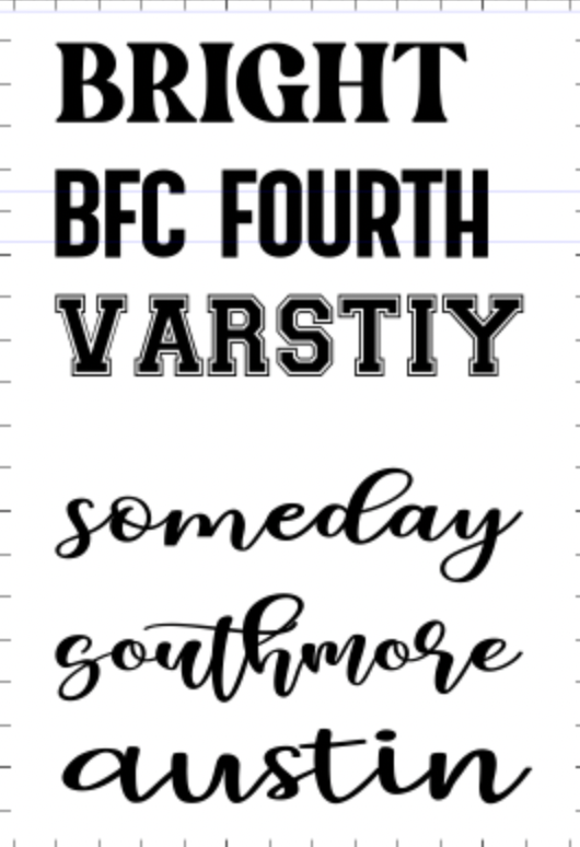 Team word stencils (CHEER, SONICS, TINY REBELS, etc.)